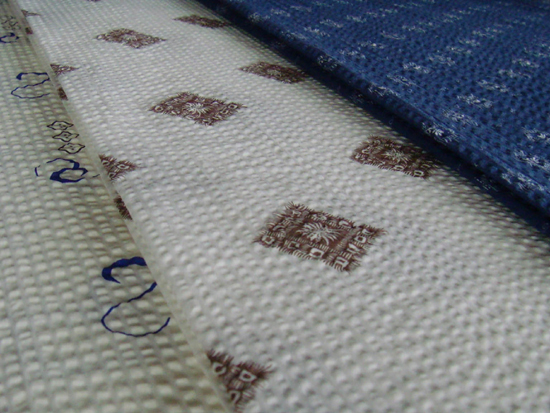 Details: | Since its cloth cloquey s form the cloth cover fluffy, together with resisting water of the cloque, the human body can be ventilate coolly when the skin perspires and cannot fully soak and tightly pastes to the fabric. It is the most popular fabric for Summer clothes. Moreover, it was accepted as 07 spring& Summer“Fabrics China”. | ||